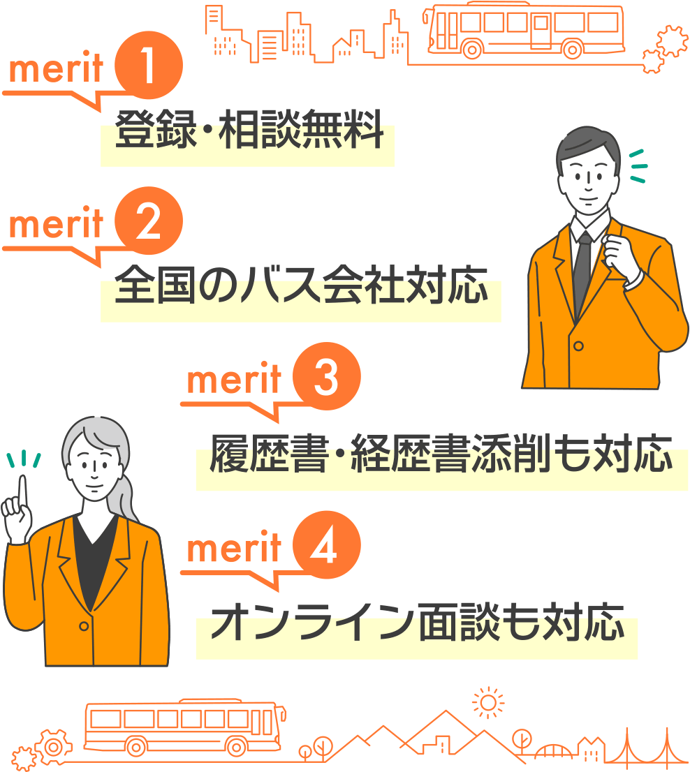 バス業界に特化した専任のエージェントが貴社にマッチングする人材のみを紹介します。