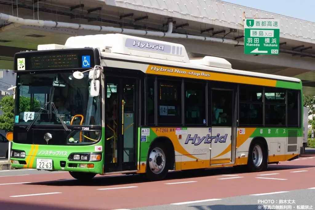 屋根上前方にバッテリーを収めた大きなカバーを装備していることが特徴の日野ブルーリボンシティ ハイブリッドですが、近年、都内の事業者では経年化により引退が進んでおり、バス愛好家の間から注目を集めています。