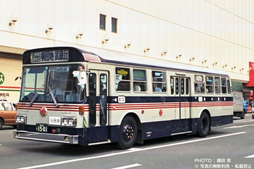 上掲写真は、西工製ボディを架装したバリアフリー対応型の大型路線バスの一例で、東急トランセ(現・東急バス)の車両です。