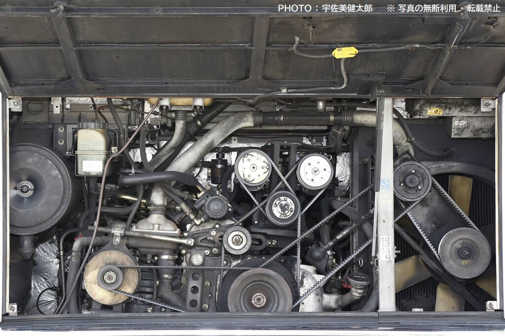 このエンジンはおもに1990年代前半の日産ディーゼル製大型路線バスに搭載されていたタイプです。