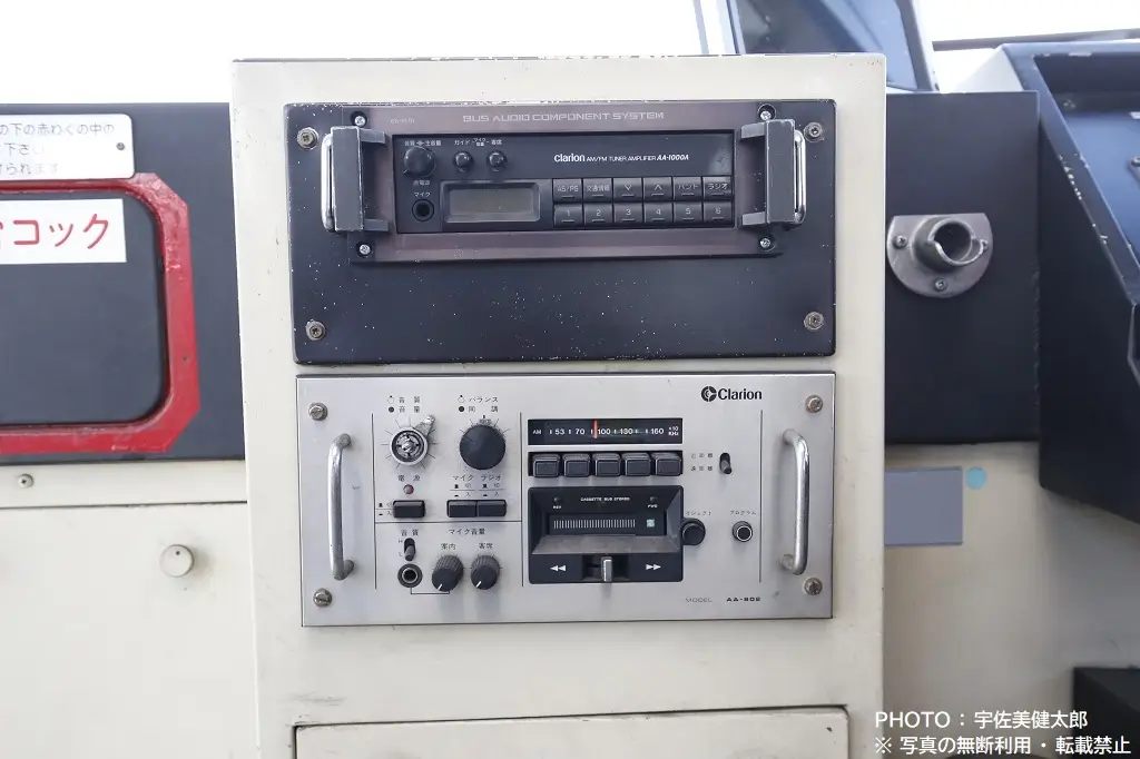 カーラジオのほか、1980年代までバスの車内放送にはよく使用されていた8トラックのカートリッジ式磁気テープを再生できるデッキを備え付けています。