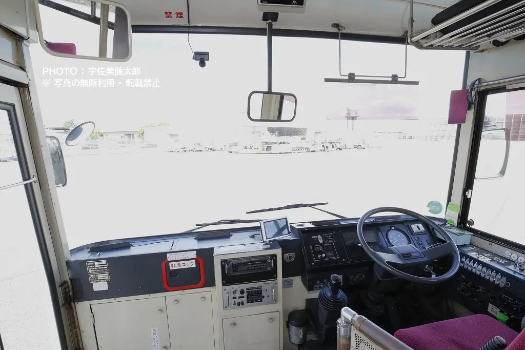 そこで、運行を担当する加治屋自動車にどんな時に運行されているのか尋ねてみると、社番BU-5は予備車扱いで搭乗客が多くなってきた時に運行に入るため、基本的に毎日運行しているわけではなく、タイミングによっては1週間くらい稼働しないこともあるとのことでした。