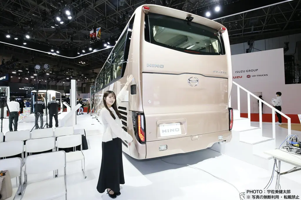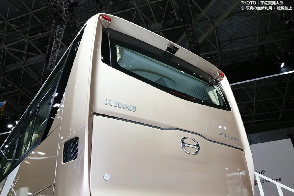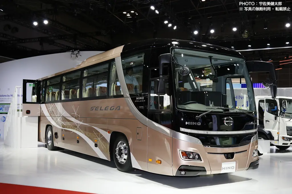 まず、開催前のリリースで非常に注目されたのが、20年ぶりにボディデザインを刷新した日野自動車の大型観光バス「日野セレガ」の会場発表です。