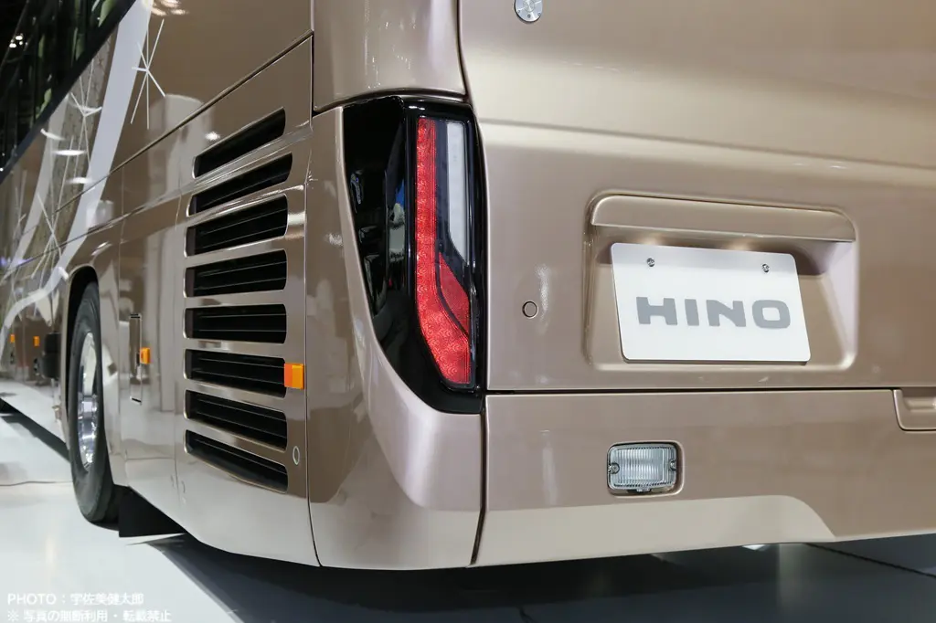 ボディデザインを刷新した日野セレガ外観で、フロントデザイン以上に大きく変わったのがリアデザインです。