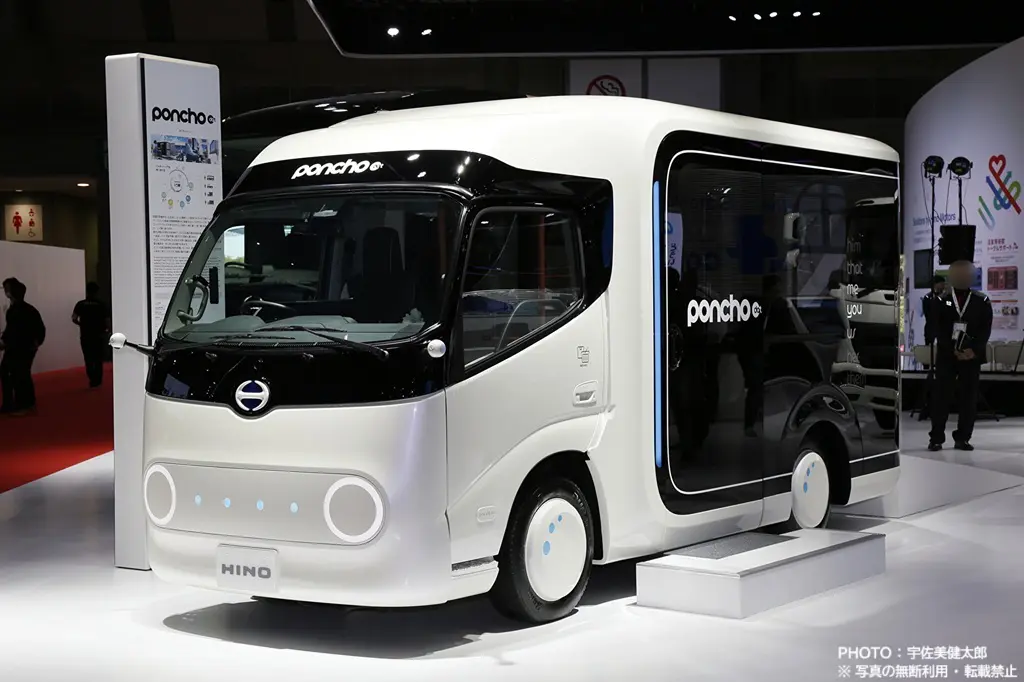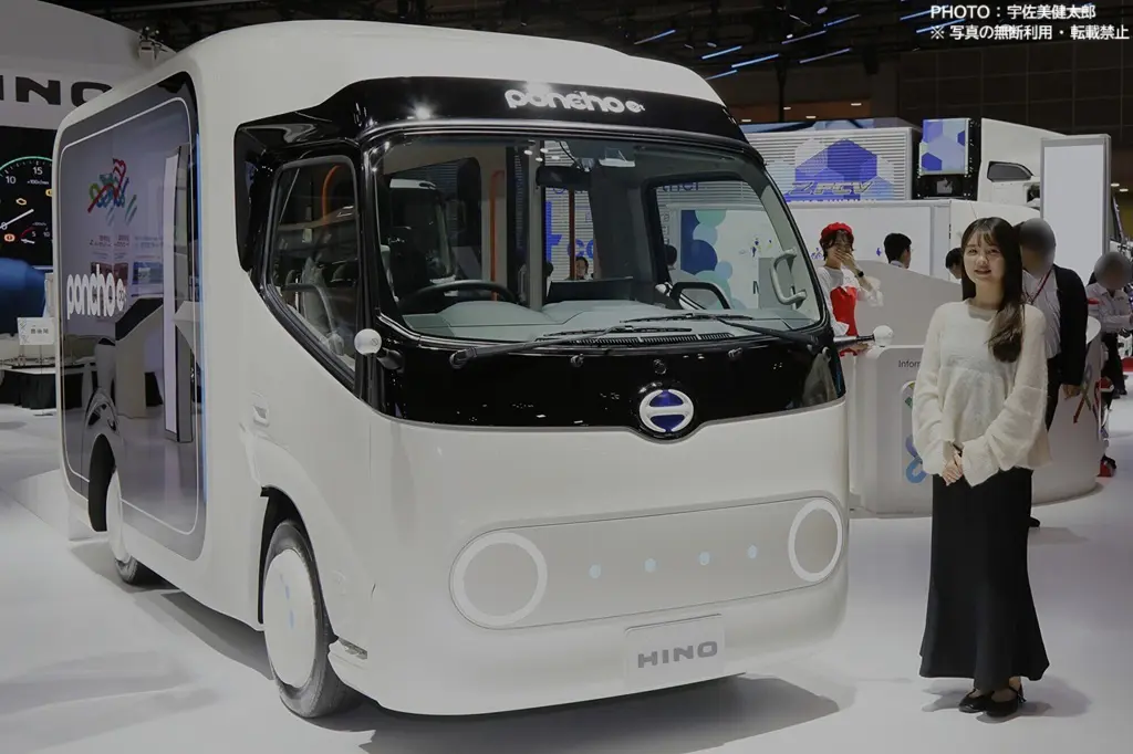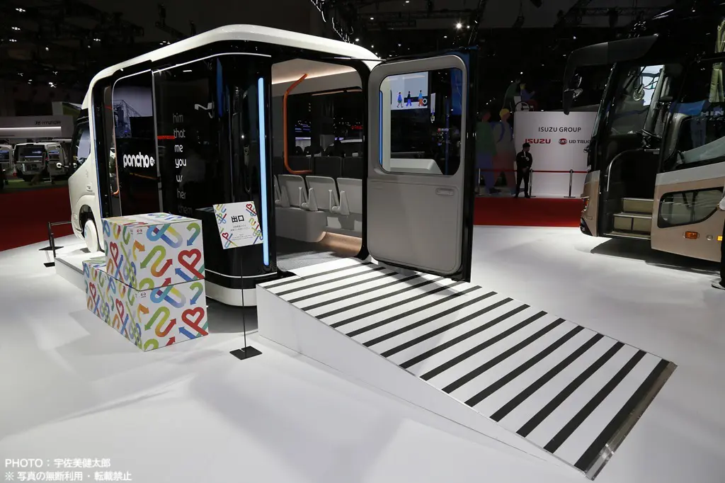 つづいて見る日野自動車ブースのバス関連の出展車はコンセプトカー「ポンチョドット」です。