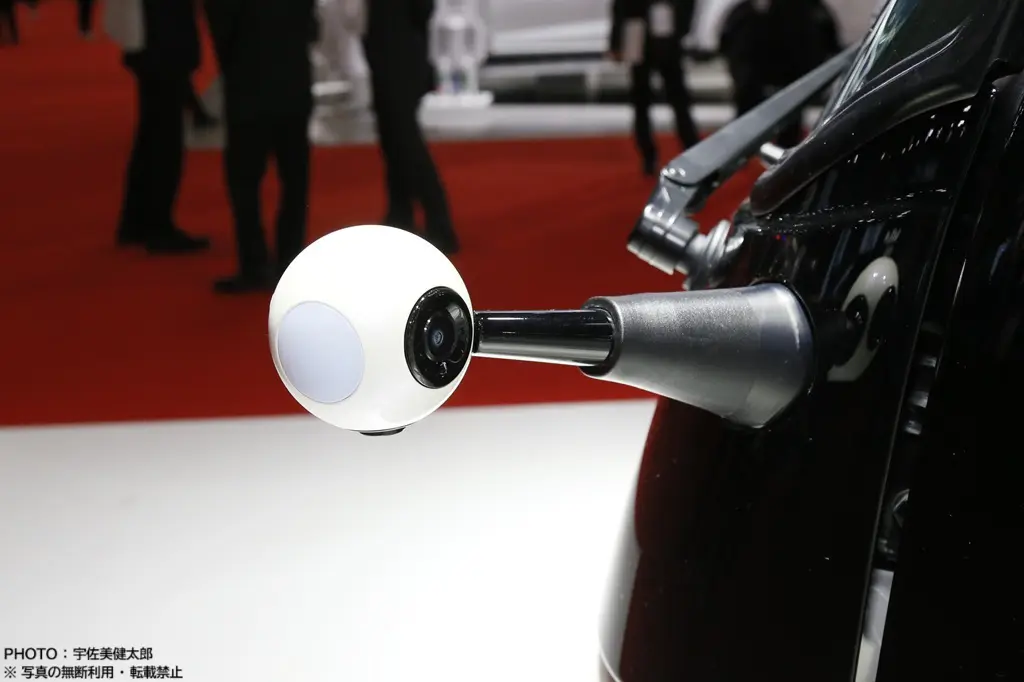 全体的なフォルムそのものからして未来的な「ポンチョドット」ですが、細部に目をこらすと、後方・死角確認用のバックミラーや補助ミラーがなく、何とカメラに置き換わっていることが分かります。