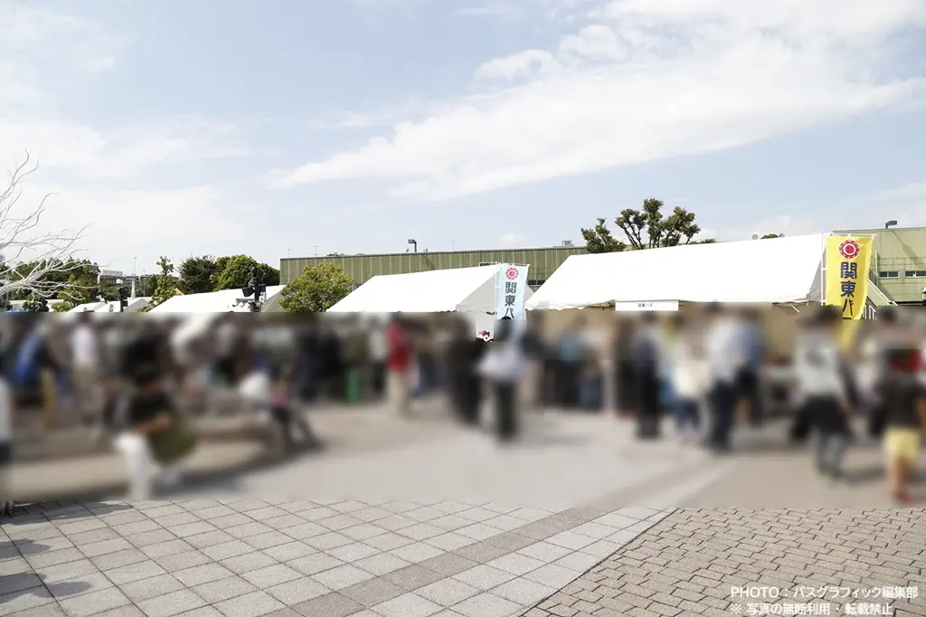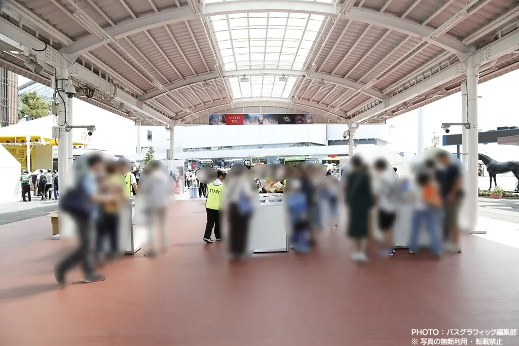 場内のイベントスペース「ウマイルスクエア」を中心に、都営バスのほか、協賛の小田急バス、関東バス、京浜急行バス、西武バス、東急バス、はとバスの展示車両やブースが展開しました。