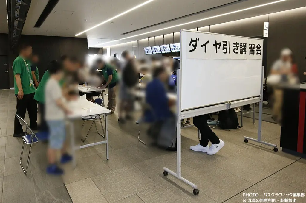 体験型のイベントとしては、屋内の会場で行われた「バスダイヤ引き講習」も人気を集めていました。